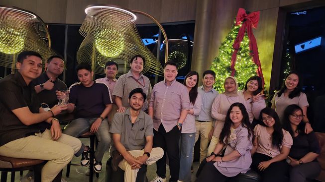 Am Standort Jakarta finden regelmäßig Mitarbeiterevents statt. Dazu gehören das Weihnachts- und Jahresabschlussessen, ein gemeinsames Potluck zur Begrüßung des Ramadans, das gemeinsame Fastenbrechen während des Ramadans sowie sogenannte „Huddle Sessions“, in denen wir uns gegenseitig Geschichten oder Fälle erzählen, die wir erlebt haben, um uns gegenseitig zu unterstützen. Außerdem gibt es jeden Freitag den „English Day“, an dem alle von 10 bis 12 Uhr und von 13 bis 15 Uhr ausschließlich Englisch sprechen müssen. Wer versehentlich auf Indonesisch spricht, muss eine kleine Strafe zahlen – dieses Geld wird gesammelt und davon Snacks gekauft, die wir dann gemeinsam bei einem kleinen Plausch genießen. In diesem Jahr (2025) haben wir unser 10-jähriges Jubiläumsdinner im selben Hotel gefeiert, in dem wir auch unser allererstes Weihnachtsessen veranstaltet haben, um uns an unsere Anfänge zu erinnern und gemeinsam in Erinnerungen zu schwelgen. Unser Weihnachtsessen 2023 fand im Restaurant im 51. Stock eines berühmten Hotels in Jakarta statt.